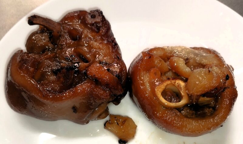 今回のレシピは、業務スーパーのやわらか豚足を使った「焼き豚足」です。